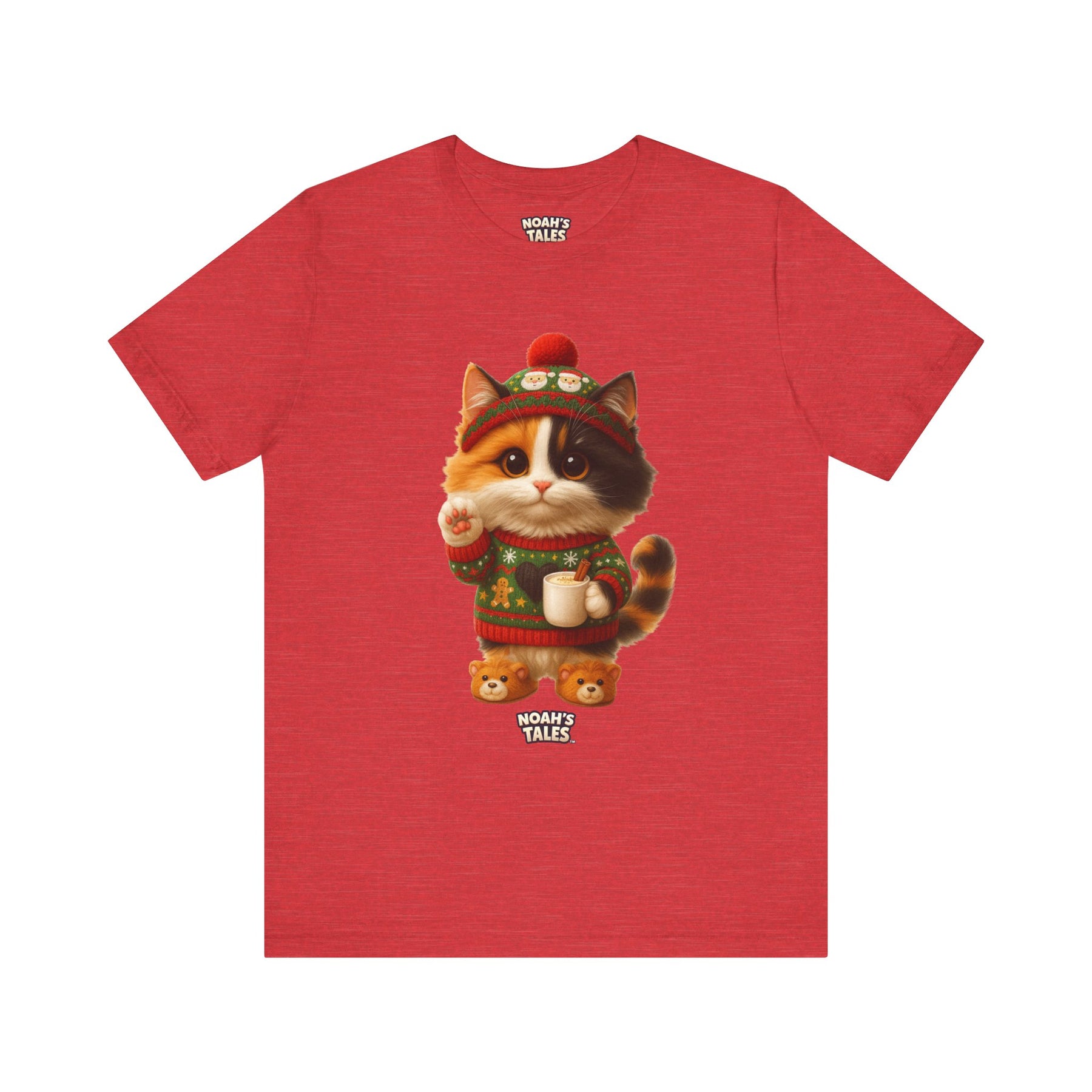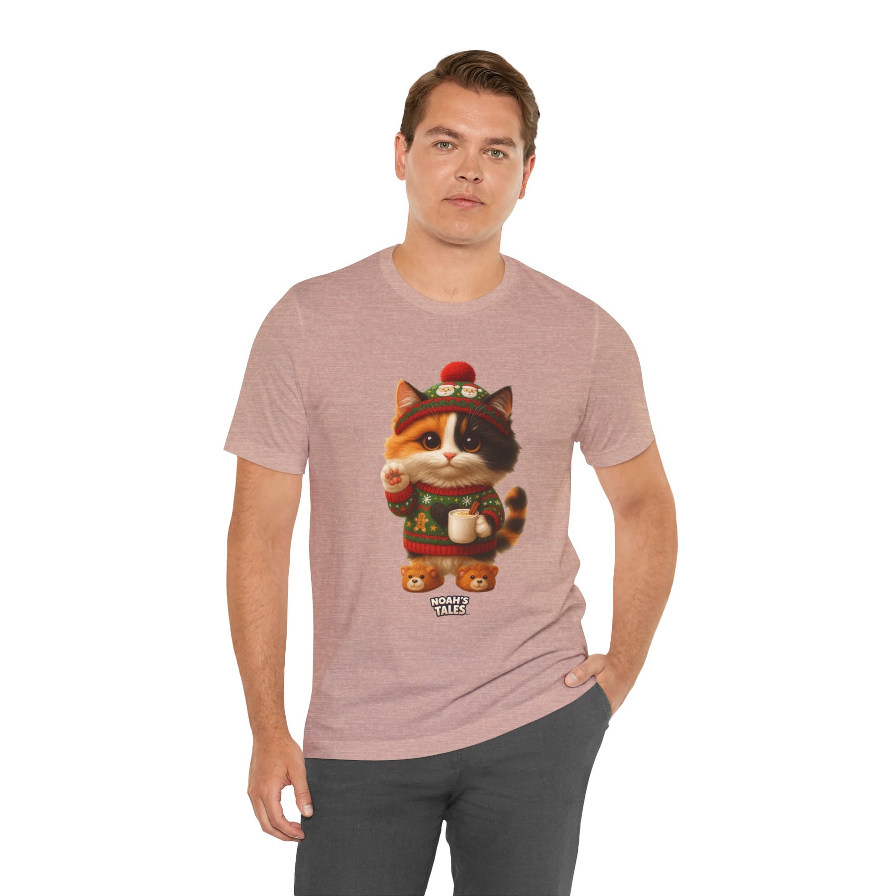 Introducing the perfect Unisex Jersey Short Sleeve Tee that combines comfort and style! This lightweight shirt is designed with a soft fabric that feels good against your skin, making it an ideal choice for any casual outing or relaxed day at home. The vibrant design, featuring an adorable cat in a festive sweater, brings a playful vibe that’s sure to bring smiles wherever you go. Perfect for pet lovers and those who appreciate whimsy, this tee is the ultimate way to show off your fun personality. It’s perfect for cozy gatherings during holidays like Christmas and casual get-togethers. Whether you're lounging or out and about, this versatile tee will quickly become a wardrobe favorite!