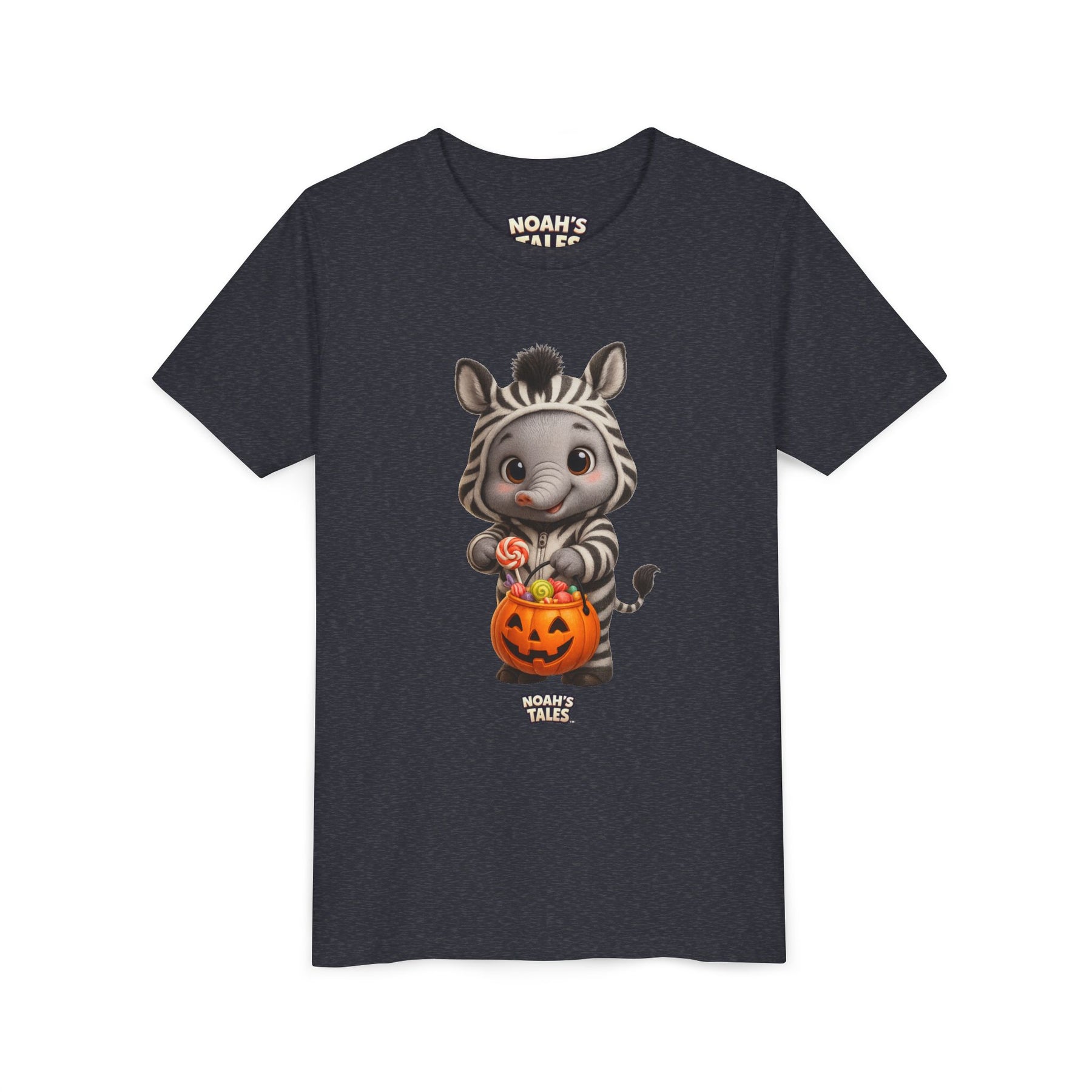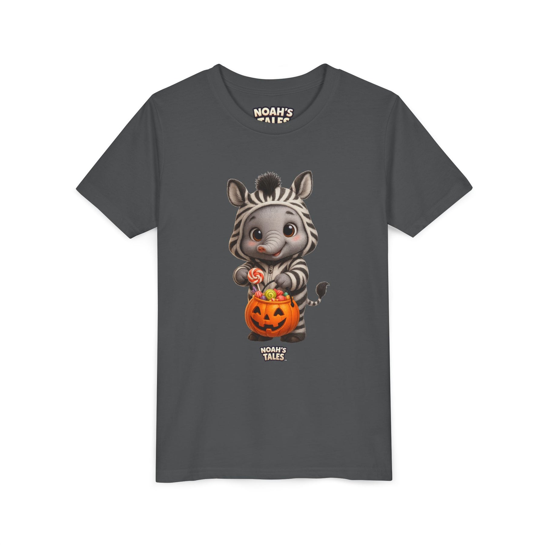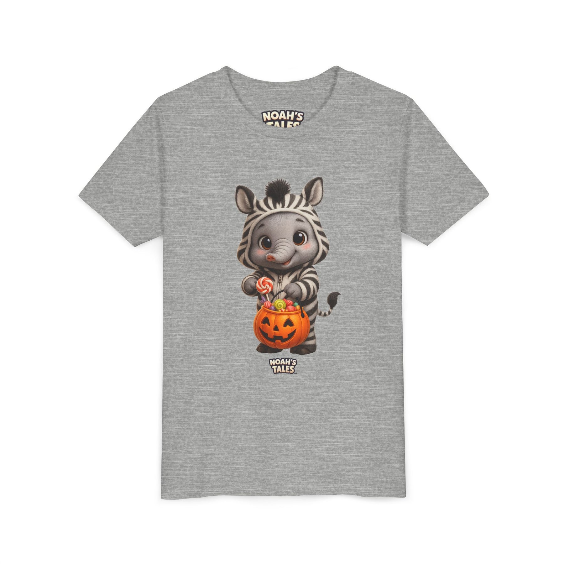 Introducing a playful and charming Youth Short Sleeve Tee that brings joy and creativity to every child's wardrobe. This tee, featuring an adorable zebra character happily collecting Halloween treats, evokes a fun and festive atmosphere perfect for the spooky season. With its lightweight and soft fabric, it ensures all-day comfort while allowing young ones to express their individuality. Ideal for kids who love vibrant designs, this shirt is perfect for Halloween parties, fall celebrations, or just casual wear during the season. Parents who value style and comfort for their kids will find this tee a great addition to festive outfits, making it a wonderful gift for birthdays or holidays.