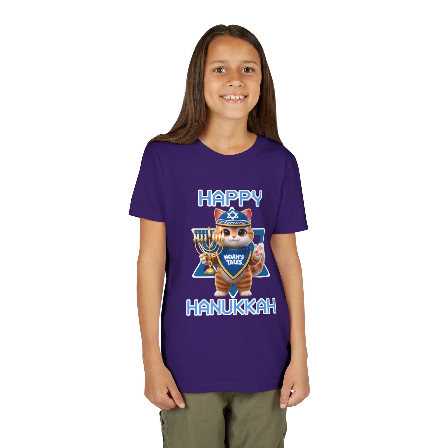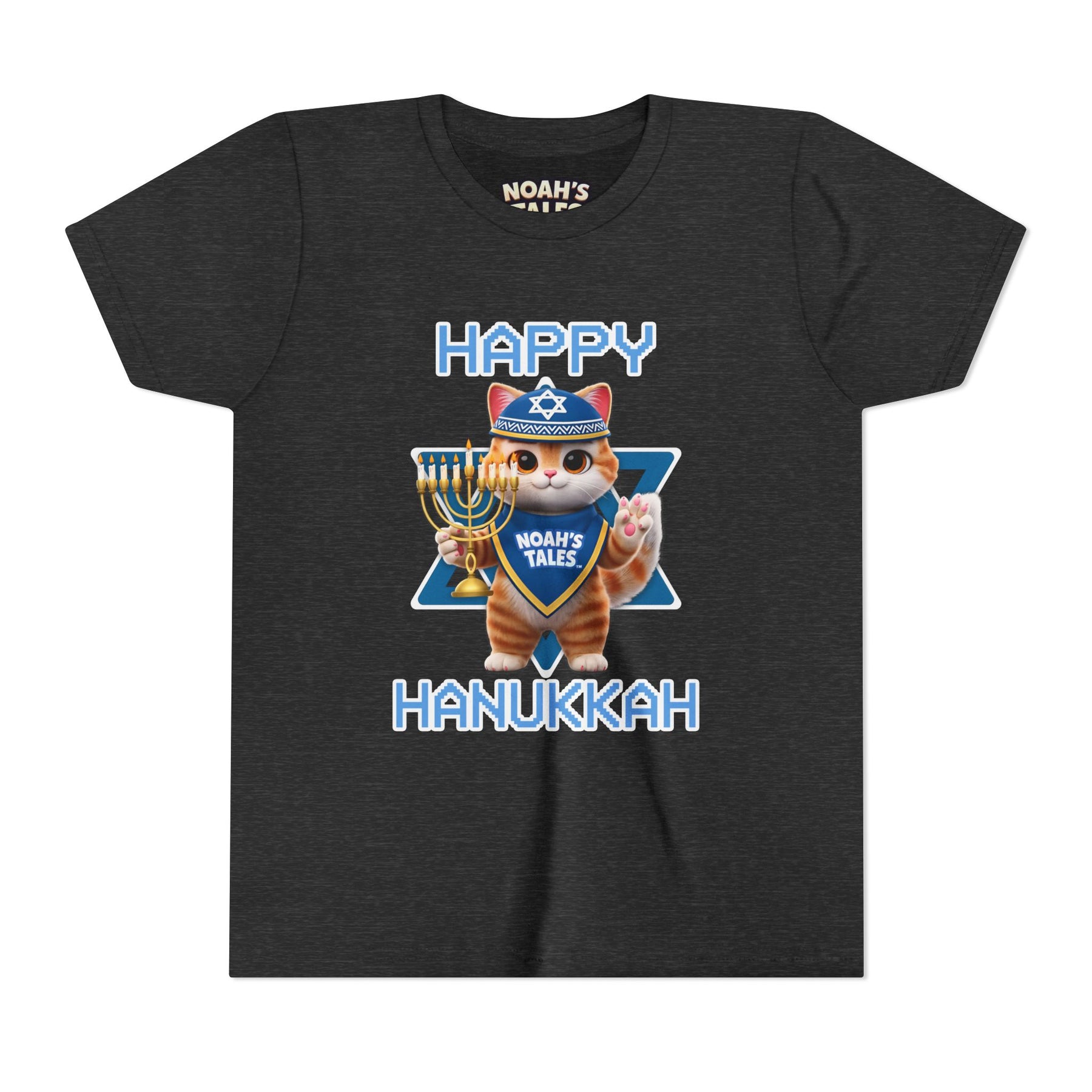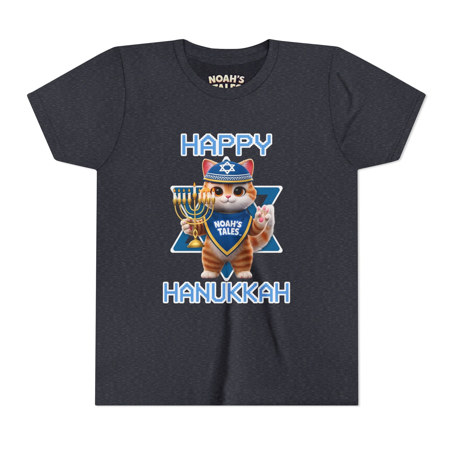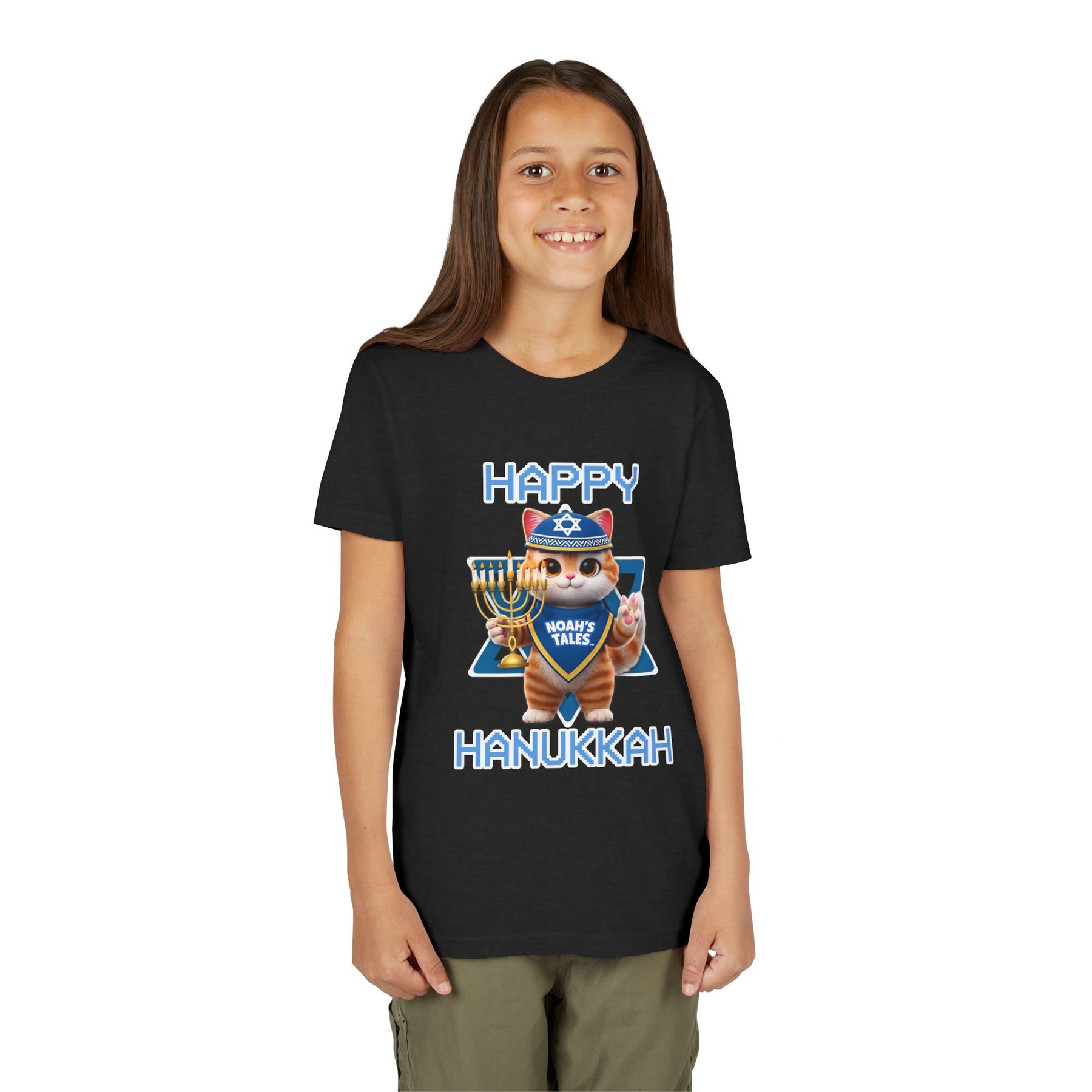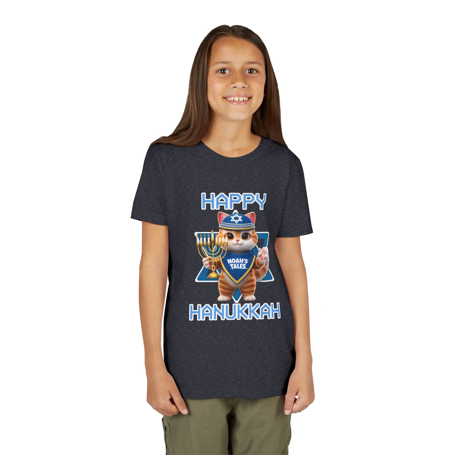 Celebrate the joy of Hanukkah with this delightful Youth Short Sleeve Tee, designed to bring festive cheer to your little ones. Featuring a playful and vibrant graphic, this tee embodies the spirit of the holiday, making it perfect for family gatherings, parties, or everyday wear during the season. The soft, lightweight fabric ensures ultimate comfort, allowing kids to move freely and enjoy their celebrations. Ideal for children who love to express themselves and embrace their culture, this tee makes a thoughtful gift for birthdays, Hanukkah, or any special occasion. Let your child shine bright this holiday season in style!