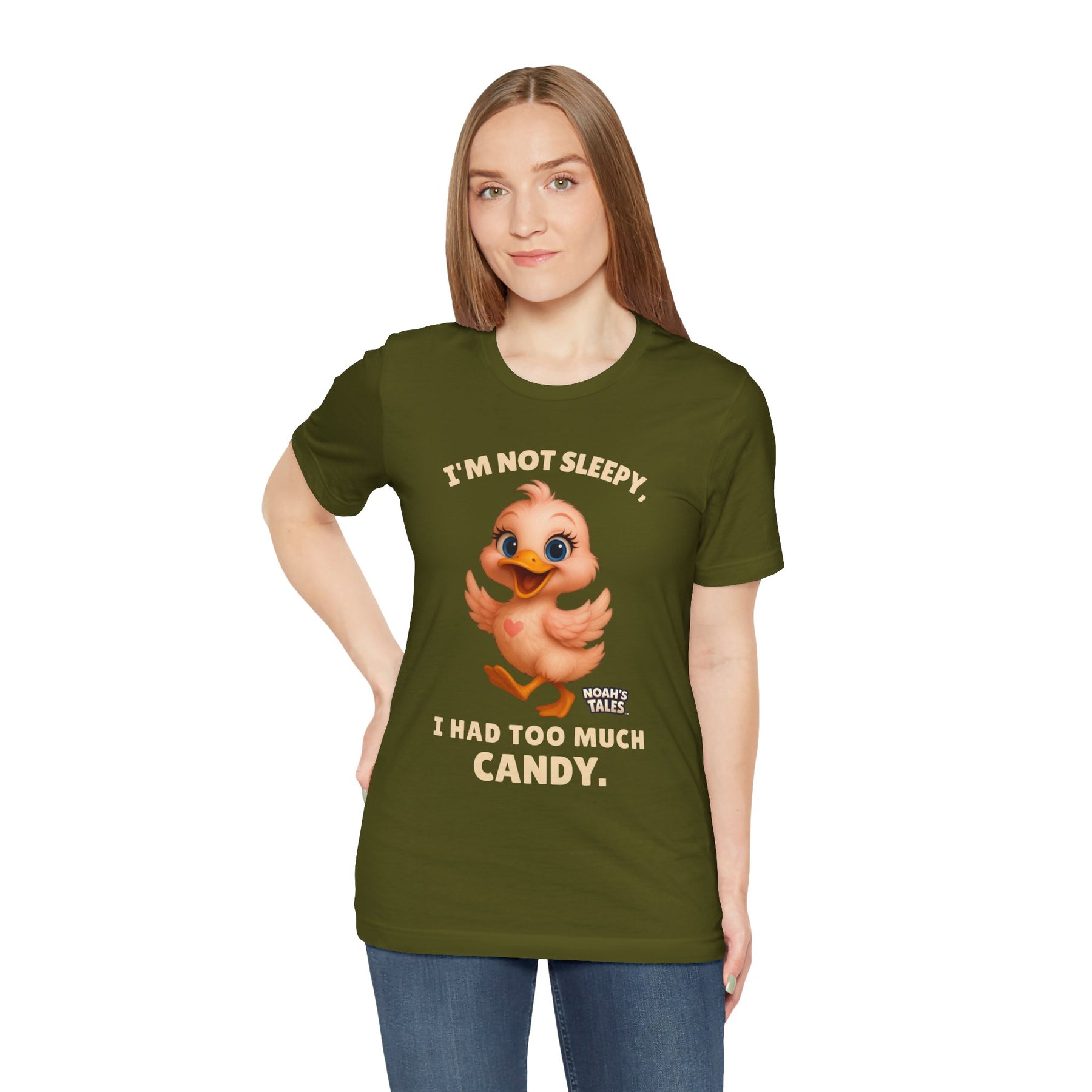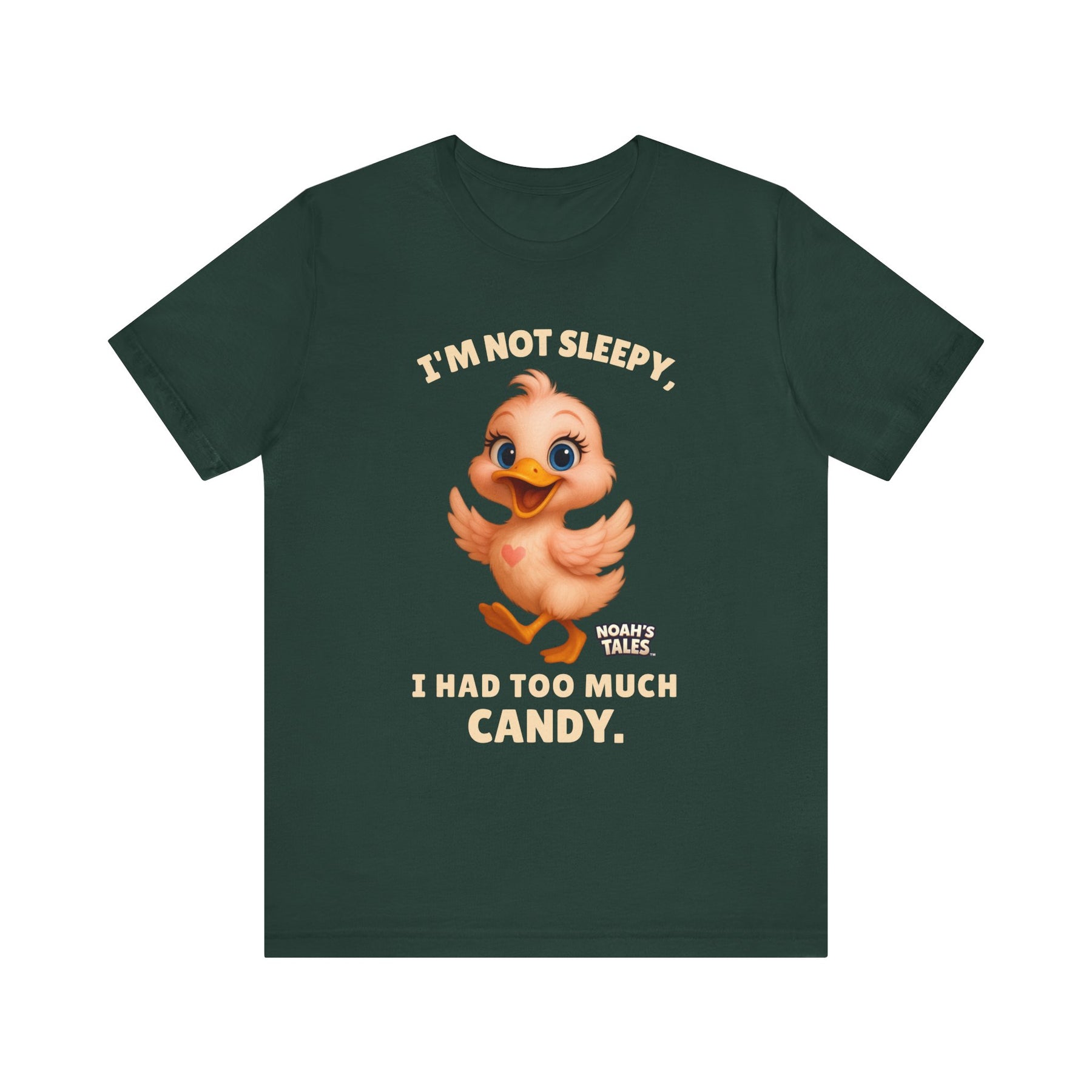 Elevate your wardrobe with this fun and expressive Unisex Jersey Short Sleeve Tee. Featuring a playful design that confidently declares, "I'm Not Sleepy, I Had Too Much Candy," this t-shirt radiates a cheerful and light-hearted vibe. Perfect for casual outings, it can easily fit into your everyday life—be it a family gathering, a playful day with friends, or a laid-back afternoon at home. Ideal for anyone who embraces a whimsical attitude, it’s a fantastic choice for both kids and young-at-heart adults. This tee is perfect for Halloween celebrations or parties, birthday festivities, or simply for those who love to express themselves through creative fashion.