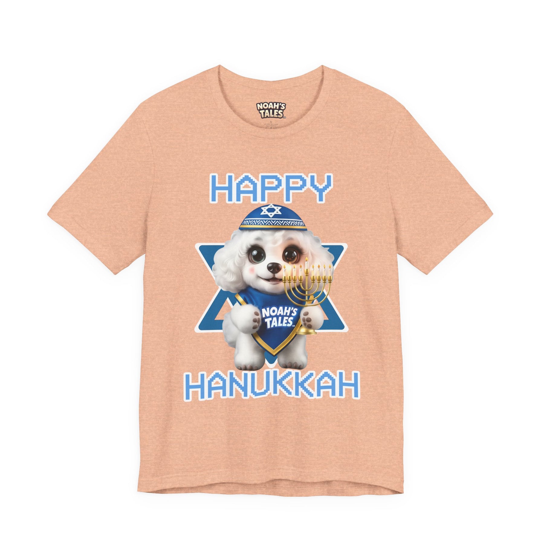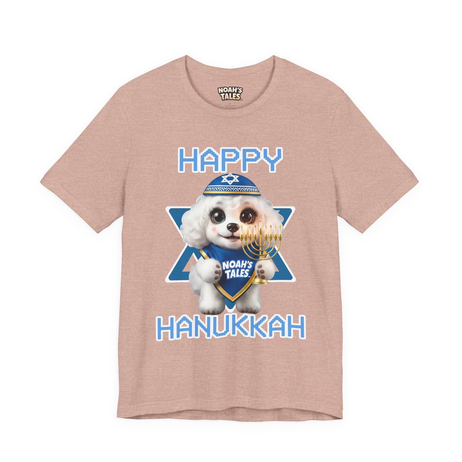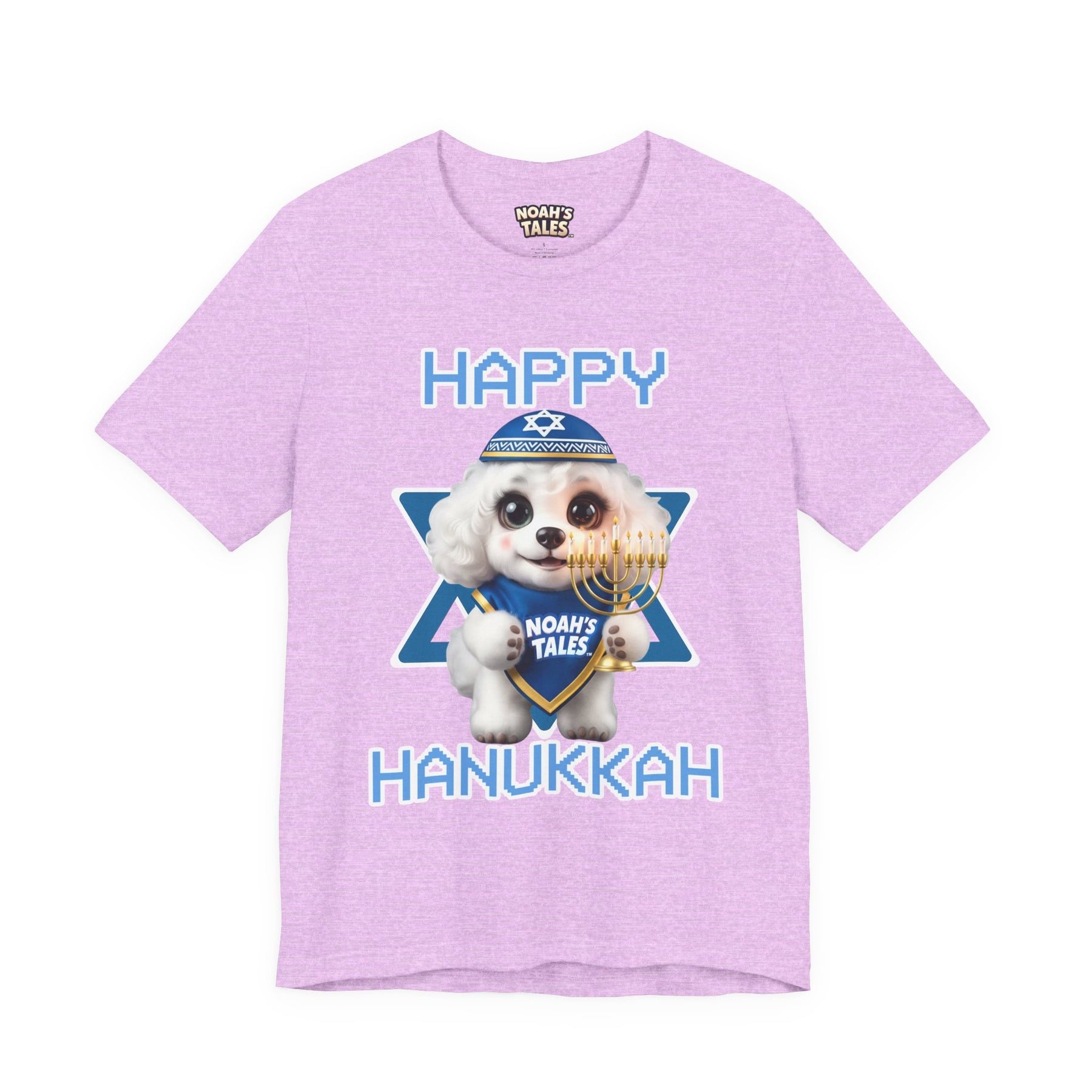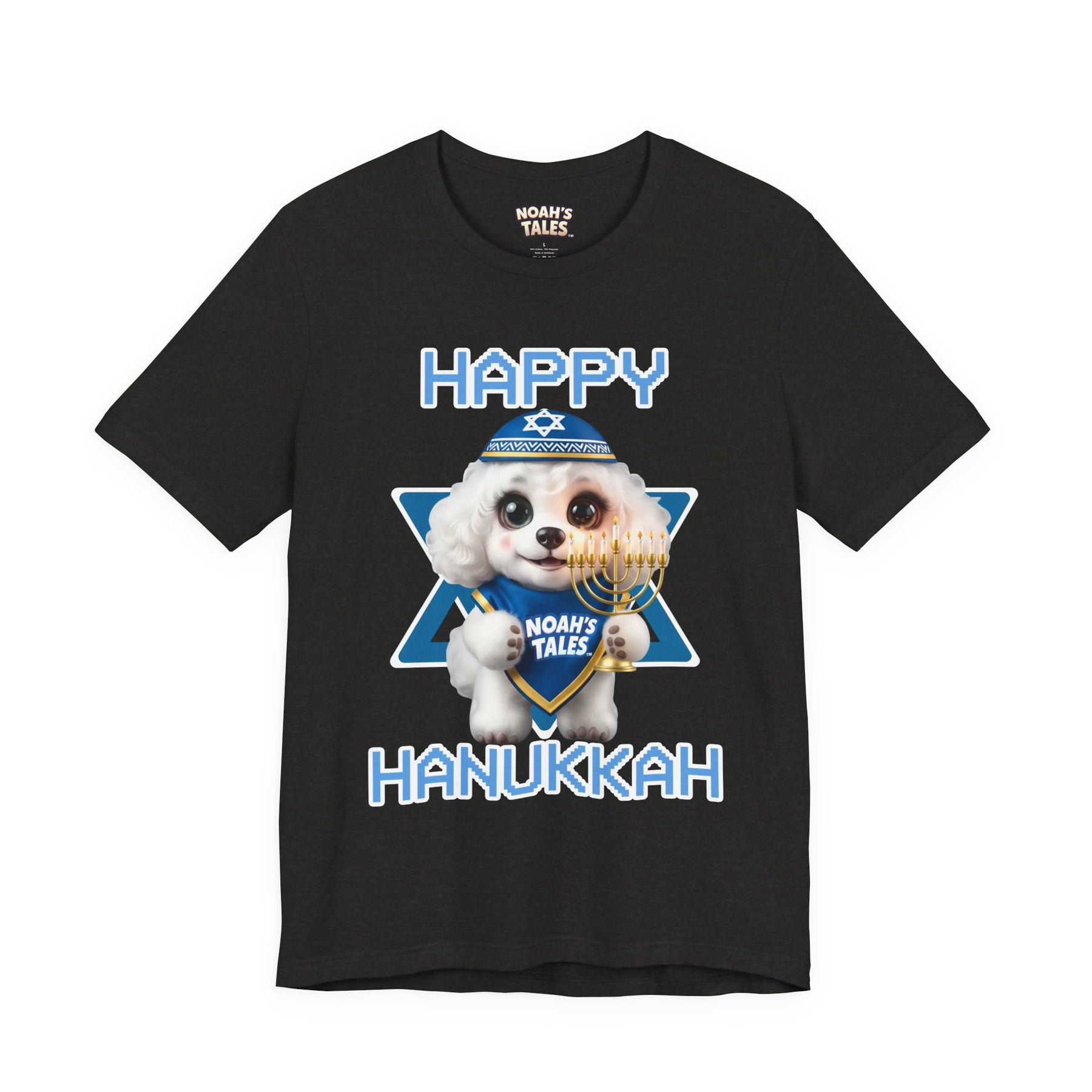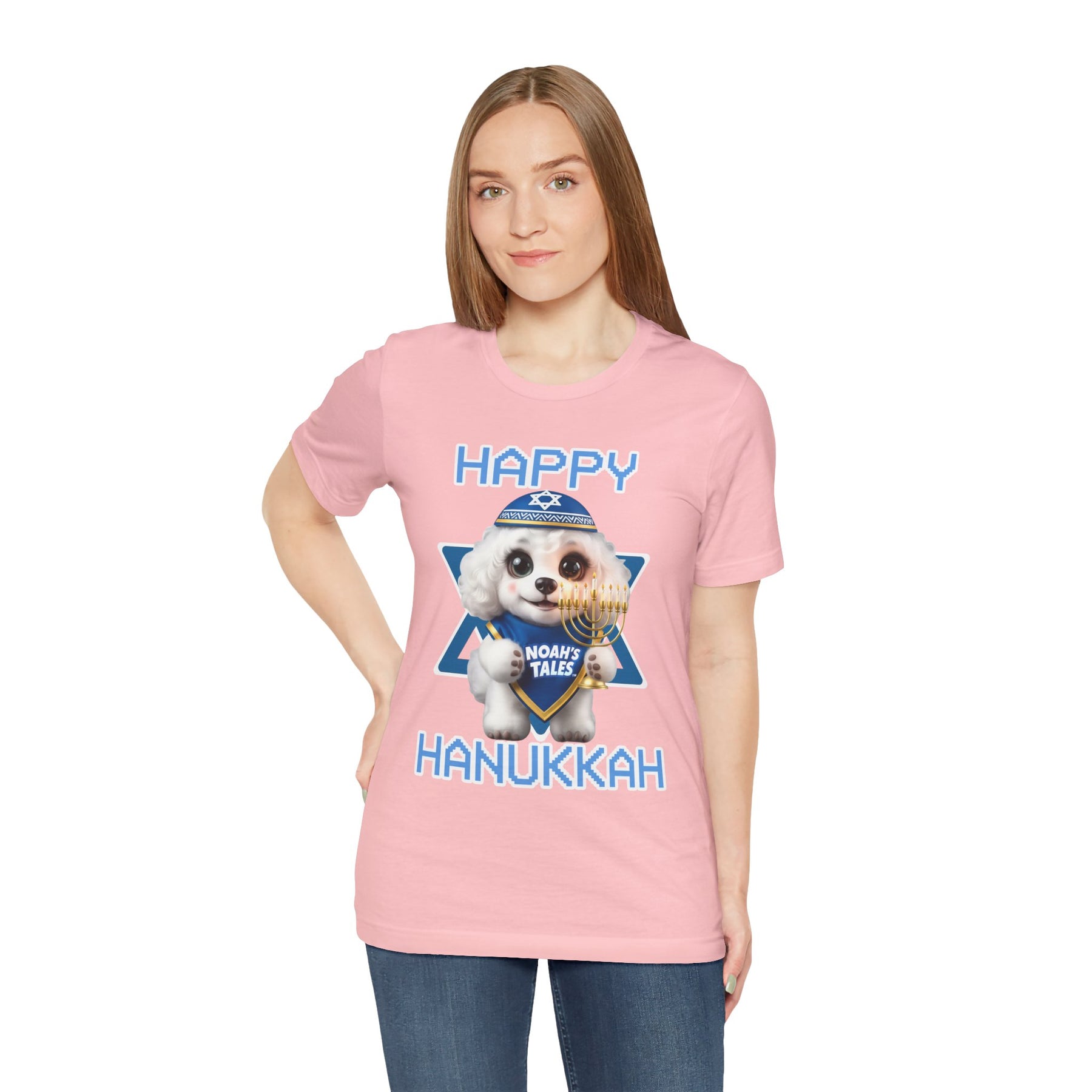 Celebrate the joy of Hanukkah with this delightful unisex jersey short sleeve tee. Crafted from 100% Airlume combed and ring-spun cotton, it offers a lightweight and breathable feel that makes it perfect for the festivities. The charming design features a playful puppy with festive elements, making it an ideal choice for family gatherings or community celebrations. Whether you're lighting the menorah or enjoying holiday meals, this tee adds a touch of fun and warmth to your celebrations. Ideal for anyone looking to share their love for Hanukkah, it’s a great gift for both adults and kids. Perfect for wearing throughout the holiday season, this shirt is not just a garment; it's a festive statement piece.